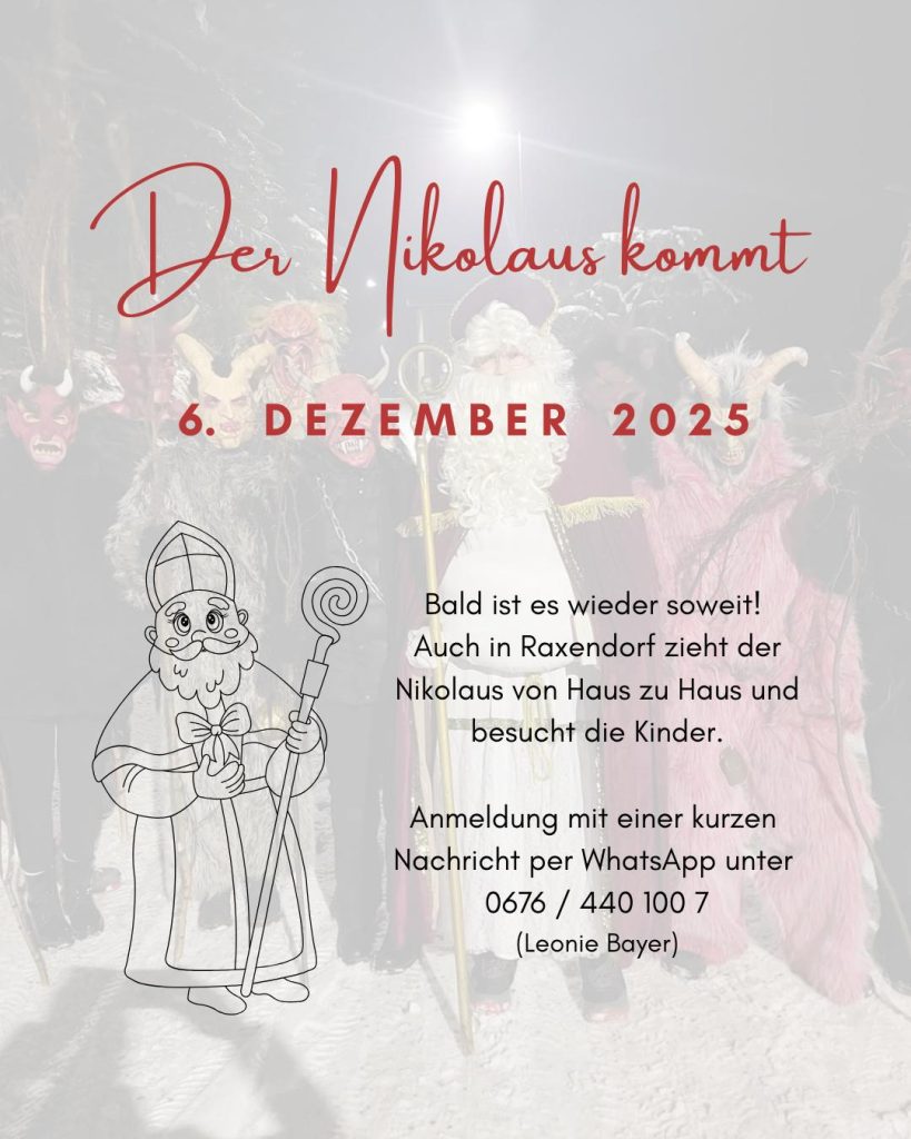 Am 6. Dezember zieht der Nikolaus wieder gemeinsam mit seinen Krampussen in Raxendorf von Haus zu Haus. Melde dich ganz einfach mit einer kurzen Nachricht per WhatsApp an. 🗓️📞